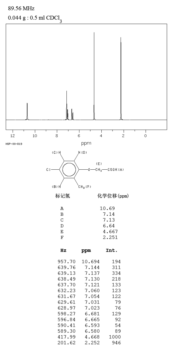 3.由邻甲酚、水、液碱反应制得邻甲酚钠。另将氯乙酸溶于水中,在常温下慢慢加入液碱,配成氯乙酸钠溶液。然后将配好的氯乙酸钠水溶液缓慢地加入到邻甲酚钠溶液中,进行缩合反应,处理后,加盐酸进行氯化,经冷却、过滤、水洗得2甲4氯。该品商品为2-甲-4-氯钠盐,加工成水剂。