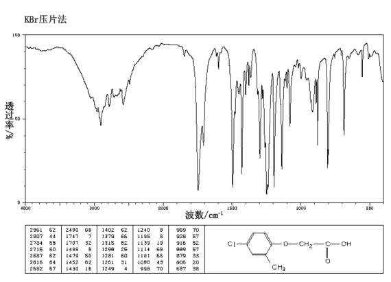 1.用作农用除草剂。 2.激素型选择性除草剂。能破坏植物的新陈代谢,致使植物变型,肿裂霉烂死亡。适用于消灭禾本科作物,如小粒谷物、水稻、豌豆、坪中的杂草,防除多种一年生和多年生双子叶宽叶杂草和某些单子叶杂草,使用剂量为0.28~2.25kg(有效成分)/hm2(1hm2=104m2)。对杀除阔叶草及三棱草等也有特效。该品对棉花、黄豆、瓜菜等阔叶作物影响很大,喷药后会死亡。不能与酸性农药混用。