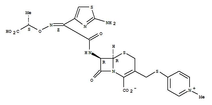 - (6S,7S)-7-[[(2E)-2-(2-amino-1,3-thiazol-4-yl)-2-[(1S)-1-carboxyethoxy]iminoacetyl]amino]-3-[(1-methylpyridin-1-ium-4-yl)sulfanylmethyl]-8-oxo-5-thia-1-azabicyclo[4.2.0]oct-2-ene-2-carboxylate;