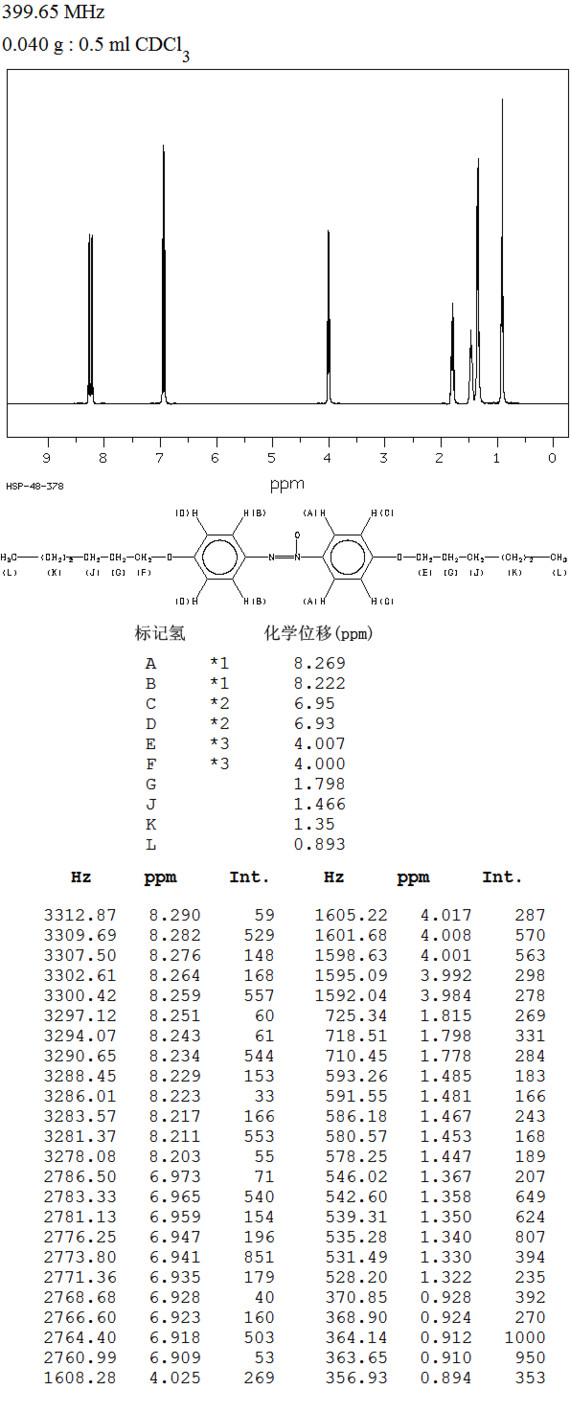 化学名(中文名): 4,4'-双(己氧基)氧化偶氮苯