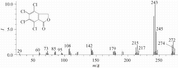 四氯苯酞的合成 将100g3,4,5,6-α,α,α',α'-八氯邻二甲苯和900g95%的硫酸搅拌混合后,升混至130~140℃,保温5h,至无氯化氢气体逸出,冷至室温,再缓缓倒入冰水中,析出淡黄色结晶,抽滤,水洗、干燥后得四氯苯酞70g左右
