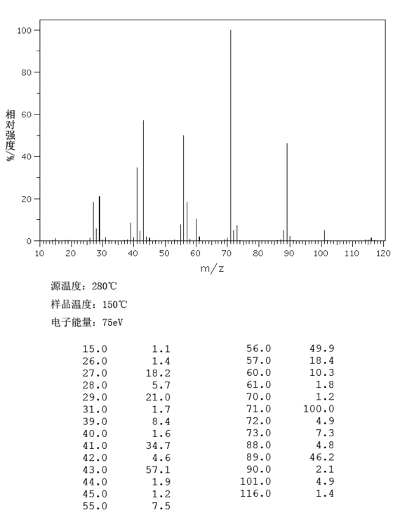 2.用于调制香蕉、菠萝、苹果等果香型食用香精和威士忌酒香精,也可用于奶油香精的调香。一般在口香糖中使用量为150~1500mg/kg;糖果中24mg/kg;冷饮中22mg/kg;烘烤食品中22mg/kg;饮料中8.6mg/kg。