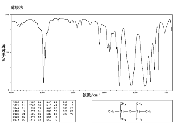 1.将62.49g(0.575mol)三甲基氯硅烷滴加至72.7g(0.06mol)N,N-二甲基苯胺和7g水组成的溶液中,加热回流1h。常压蒸馏,收集98-101℃馏分,经干燥即为六甲基二硅醚,得43-44g,收率92-94%。工业生产是将三甲基氯硅烷在30-40℃水解。