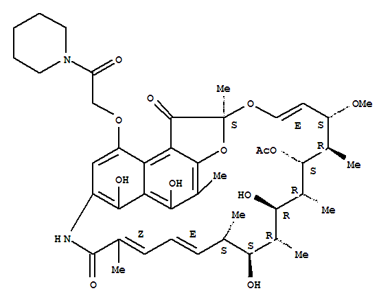 (14E,24E)-5,6,17,19-四羟基-23-甲氧基-2,4,12,16,18,20,22-七甲基-1,11-二羰基-9-(2-羰基-2-哌啶-1-基乙氧基)-1,2-二氢-2,7-(环氧十五碳[1,11,13]三烯桥亚氨基)萘并[2,1-b]呋喃-21-基乙酸酯