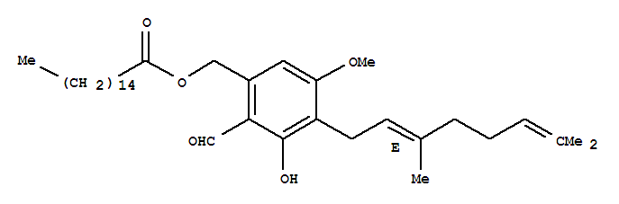 十六烷酸,[4-[(2E)-3,7-二甲基-2,6-辛二烯-1-基]-2-甲酰基-3-羟基-5-甲氧苯基]甲基酯