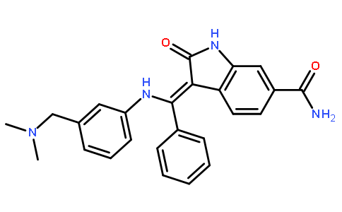334949-59-6((3Z)-3-[[[3-[(二甲基氨基)甲基]苯基]氨基]苯亚甲基]-2,3-二氢-2-氧代-1H-吲哚-6-甲酰胺)