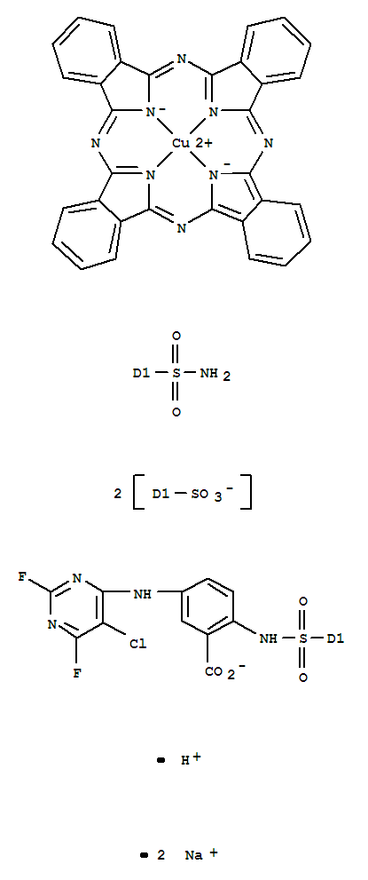 73038-37-6([2-[[[(氨基磺酰基)二磺基-29H,31H-酞菁基]磺酰基]氨基]-5-[(5-氯-2,6-二氟-4-嘧啶基)氨基]苯甲酸根合N29,N30,N31,N32]铜酸氢二钠)