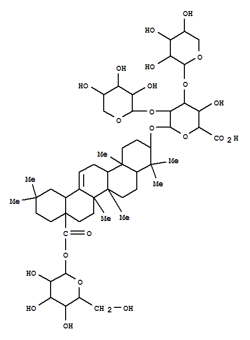 | 英文名称: | b-D-Glucopyranosiduronic acid, (3b)-28-(b-D-glucopyranosyloxy)-28-oxoolean-12-en-3-yl O-b-D-xylopyranosyl-(1®2)-O-[b-D-xylopyranosyl-(1®3)]- (9CI) |