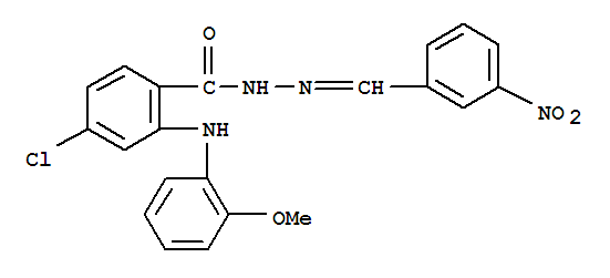 | 英文名称: | Benzoic acid,4-chloro-2-[(2-methoxyphenyl)amino]-, 2-[(3-nitrophenyl)methylene]hydrazide |