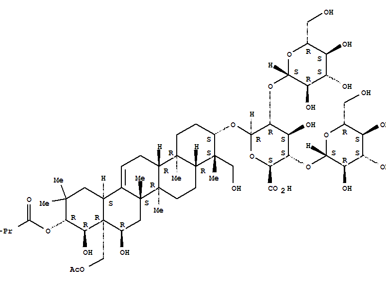 | 英文名称: | b-D-Glucopyranosiduronic acid, (3b,4b,16a,21b,22a)-28-(acetyloxy)-16,22,23-trihydroxy-21-(2-methyl-1-oxopropoxy)olean-12-en-3-ylO-b-D-glucopyranosyl-(1®2)-O-[b-D-glucopyranosyl-(1®4)]- (9CI) |