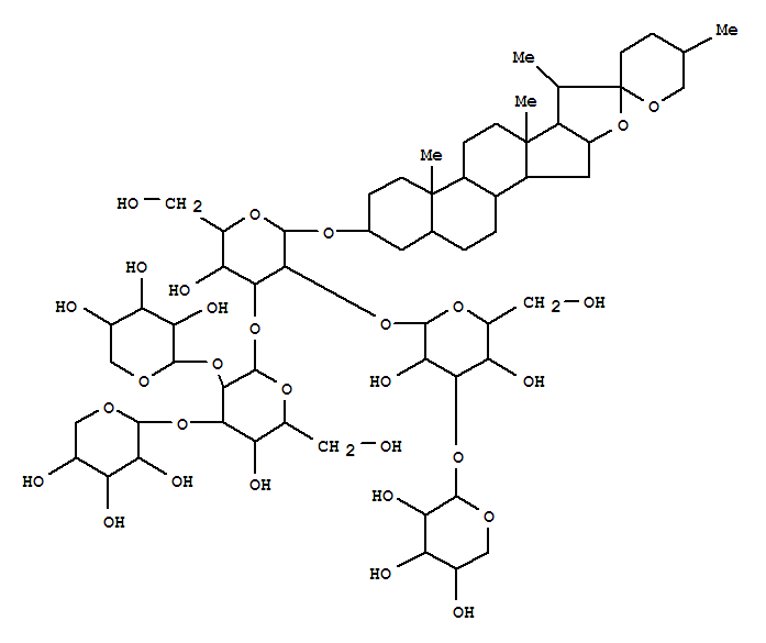 | 英文名称: | b-D-Glucopyranoside, (3b,5a,25R)-spirostan-3-yl O-b-D-xylopyranosyl-(1®3)-O-b-D-galactopyranosyl-(1®2)-O-[O-b-D-xylopyranosyl-(1®2)-O-[b-D-xylopyranosyl-(1®3)]-b-D-glucopyranosyl-(1®3)]- (9CI) |