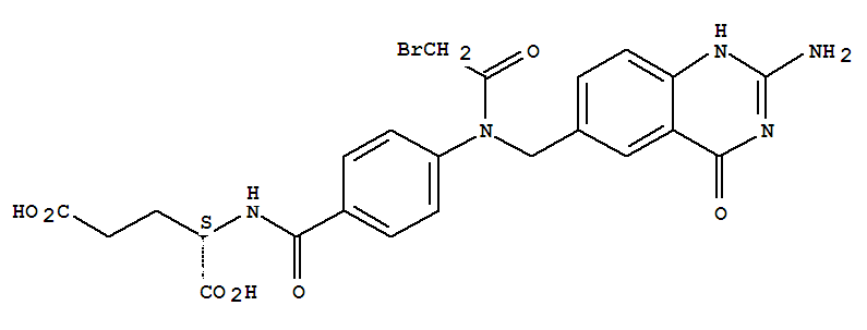| 英文名称: | L-Glutamic acid,N-[4-[[(2-amino-1,4-dihydro-4-oxo-6-quinazolinyl)methyl](bromoacetyl)amino]benzoyl]-(9CI) |