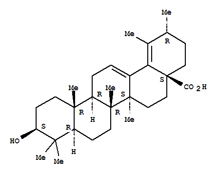 | 英文名称: | Ursa-12,18-dien-28-oicacid, 3-hydroxy-, (3b)- |