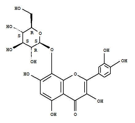 | 英文名称: | 4H-1-Benzopyran-4-one,2-(3,4-dihydroxyphenyl)-8-(b-D-glucopyranosyloxy)-3,5,7-trihydroxy- |