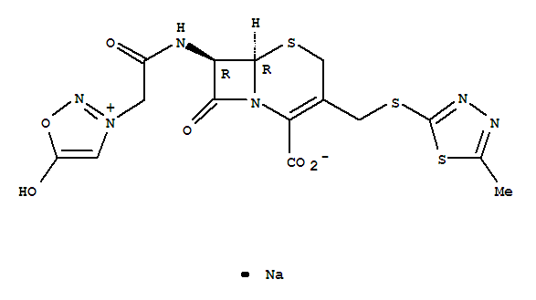 | 英文名称: | 1,2,3-Oxadiazolium,3-[2-[[(6R,7R)-2-carboxy-3-[[(5-methyl-1,3,4-thiadiazol-2-yl)thio]methyl]-8-oxo-5-thia-1-azabicyclo[4.2.0]oct-2-en-7-yl]amino]-2-oxoethyl]-5-hydroxy-,inner salt, sodium salt (1:1) |