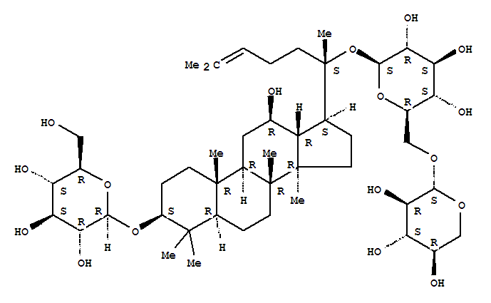 | 英文名称: | b-D-Glucopyranoside, (3b,12b)-3-(b-D-glucopyranosyloxy)-12-hydroxydammar-24-en-20-yl 6-O-b-D-xylopyranosyl- |