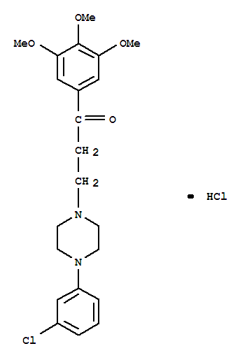 | 英文名称: | 1-Propanone,3-[4-(3-chlorophenyl)-1-piperazinyl]-1-(3,4,5-trimethoxyphenyl)-, hydrochloride(1:1) |