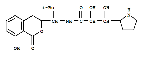 | 英文名称: | 2-Pyrrolidinepropanamide,N-[1-(3,4-dihydro-8-hydroxy-1-oxo-1H-2-benzopyran-3-yl)-3-methylbutyl]-a,b-dihydroxy-, stereoisomer |