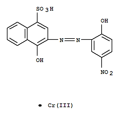 | 英文名称: | 1-Naphthalenesulfonicacid, 4-hydroxy-3-[2-(2-hydroxy-5-nitrophenyl)diazenyl]-, chromium(3+) salt(1:1) |