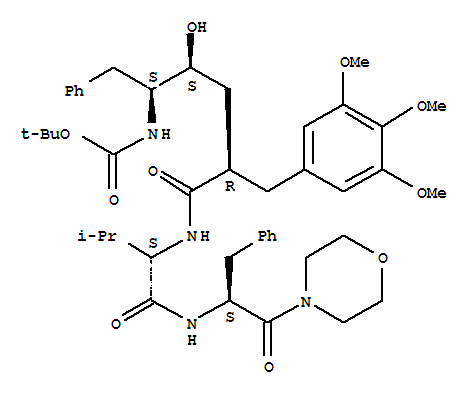 | tert-butyl N-[(2S,3S,5R)-3-hydroxy-6-[[(2S)-3-methyl-1-[[(2S)-1-morpholin-4-yl-1-oxo-3-phenylpropan-2-yl]amino]-1-oxobutan-2-yl]amino]-6-oxo-1-phenyl-5-[(3,4,5-trimethoxyphenyl)methyl]hexan-2-yl]carbamate | 100% | 165453-92-9 |