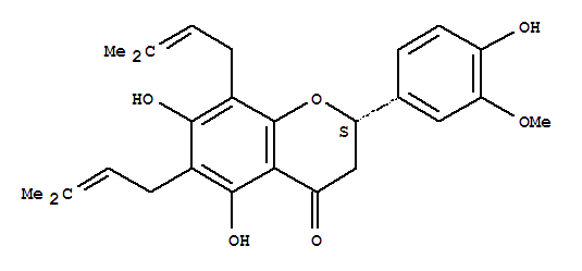 | 英文名称: | 4H-1-Benzopyran-4-one,2,3-dihydro-5,7-dihydroxy-2-(4-hydroxy-3-methoxyphenyl)-6,8-bis(3-methyl-2-buten-1-yl)-,(2S)- |