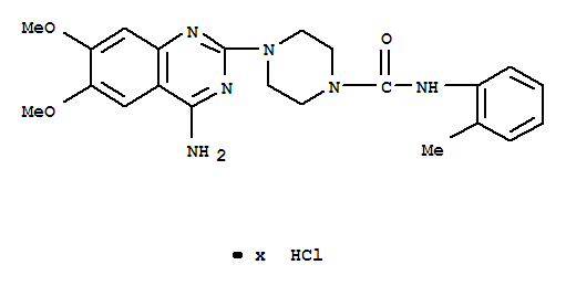 | 中文名称: | 4-(4-氨基-6,7-二甲氧基喹唑啉-2-基)-N-(2-甲基苯基)哌嗪-1-甲酰胺盐酸盐 |