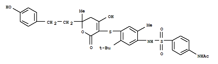 | N-[4-[[5-tert-butyl-4-[[4-hydroxy-2-[2-(4-hydroxyphenyl)ethyl]-2-methyl-6-oxo-3H-pyran-5-yl]sulfanyl]-2-methylphenyl]sulfamoyl]phenyl]acetamide | 100% | 263842-64-4 |