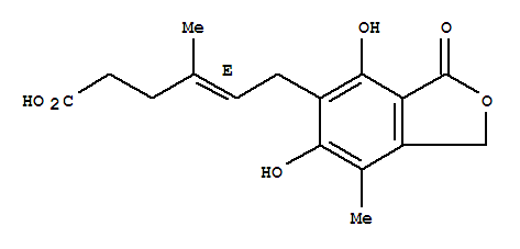 | 英文名称: | 4-Hexenoic acid,6-(1,3-dihydro-4,6-dihydroxy-7-methyl-3-oxo-5-isobenzofuranyl)-4-methyl-, (4E)- |