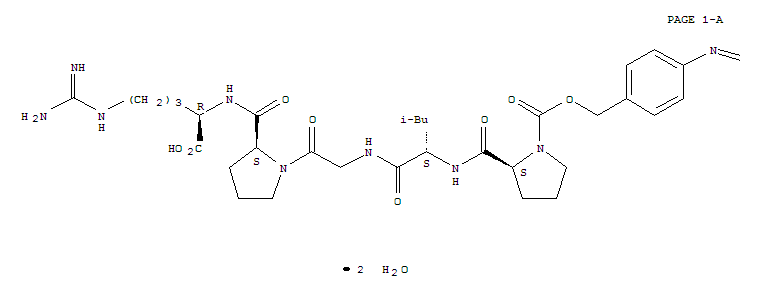 | 英文名称: | D-Arginine,N2-[1-[N-[N-[1-[[[4-(phenylazo)phenyl]methoxy]carbonyl]-L-prolyl]-L-leucyl]glycyl]-L-prolyl]-,dihydrate (9CI) |