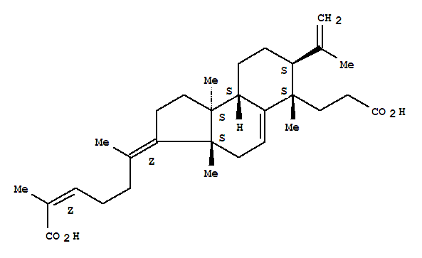 | 英文名称: | 1H-Benz[e]indene-6-propanoicacid,3-[(4Z)-5-carboxy-1-methyl-4-hexen-1-ylidene]-2,3,3a,4,6,7,8,9,9a,9b-decahydro-3a,6,9b-trimethyl-7-(1-methylethenyl)-,(3Z,3aS,6S,7S,9aS,9bS)- |