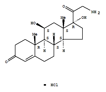 | 英文名称: | Pregn-4-ene-3,20-dione,21-amino-11,17-dihydroxy-, hydrochloride, (11b)- (9CI) |