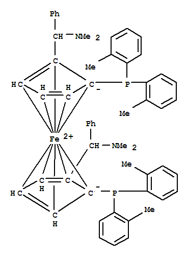 | 英文名称: | Ferrocene,1,1'-bis[bis(2-methylphenyl)phosphino]-2,2'-bis[(S)-(dimethylamino)phenylmethyl]-,(1S,1'S)- (9CI) |