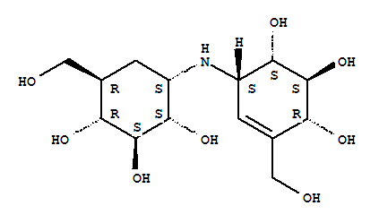 | 英文名称: | chiro-Inositol,1,5,6-trideoxy-5-(hydroxymethyl)-1-[[4,5,6-trihydroxy-3-(hydroxymethyl)-2-cyclohexen-1-yl]amino]-,stereoisomer (9CI) |