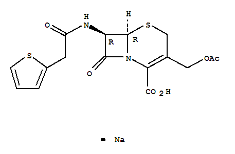 | 英文名称: | 5-Thia-1-azabicyclo[4.2.0]oct-2-ene-2-carboxylicacid, 3-[(acetyloxy)methyl]-8-oxo-7-[[2-(2-thienyl)acetyl]amino]-, sodium salt(1:1), (6R,7R)- |