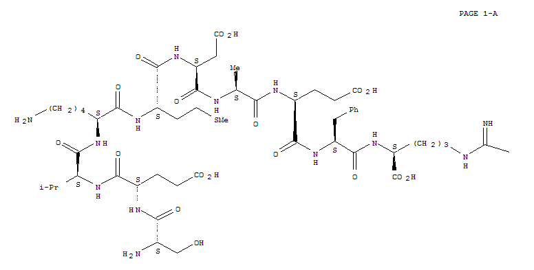 | 英文名称: | L-Arginine, L-seryl-L-a-glutamyl-L-valyl-L-lysyl-L-methionyl-L-a-aspartyl-L-alanyl-L-a-glutamyl-L-phenylalanyl- |