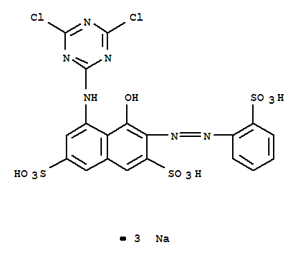 | 英文名称: | 2,7-Naphthalenedisulfonicacid,5-[(4,6-dichloro-1,3,5-triazin-2-yl)amino]-4-hydroxy-3-[2-(2-sulfophenyl)diazenyl]-,sodium salt (1:3) |