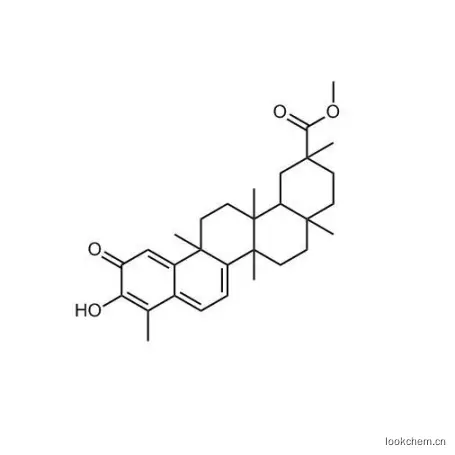 - 24-Nor-D:A-friedooleana-1(10),3,5,7-tetraen-29-oicacid, 3-hydroxy-2-oxo-, methyl ester (8CI);D:A-Friedo-24-noroleana-1(10),3,5,7-tetraen-29-oic acid, 3-hydroxy-2-oxo-,methyl ester, (20a)-;Pristimerin (7CI); 2-Picenecarboxylic acid,1,2,3,4,4a,5,6,6a,11,12b,13,14,14a,14b-tetradecahydro-10-hydroxy-2,4a,6a,9,12b,14a-hexamethyl-11-oxo-,methyl ester, (2R,4aS,6aS,12bR,14aS,14bR)-; 2-Picenecarboxylic acid,1,2,3,4,4a,5,6,6a,11,12b,13,14,14a,14b-tetradecahydro-10-hydroxy-2,4a,6a,9,12b,14a-hexamethyl-11-oxo-,methyl ester, [2R-(2a,4ab,6ab,12bb,14aa,14bb)]-; Celastrol, methyl ester; NSC 99281