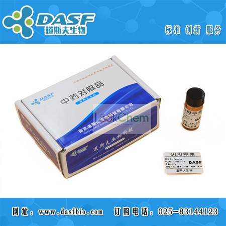 贝母甲素 中文同义词: 贝母素甲;浙)贝母甲素;貝母鹼;贝母素甲,浙贝甲素;贝母甲素;贝母素甲(标准品);湖贝碱甲;浙贝甲素 英文名称: Peimine 英文同义词: ISODIHYDROIMPERIALINE;PEIMINE;VERTICINE;Peimine(Verticine);Cevane-3,6,20-triol, (3β,5α,6α)-;Dihydroisoimperialine;(5α)-Cevane-3β,6α,20-triol;PAYNANTHEINE(SH) CAS号: 23496-41-5 分子式: C27H45NO3 分子量: 431.65 化学分类:Alkaloids生物碱类 来 源:Fritillaria thunbergii Mig 性状: 本品为白色粉末 纯度:>98% 检测方式:高效液相色谱法HPLC≥98% 规格:20mg 100mg 500mg 1g 1kg (可根据客户需求包装) 作用与用途:本品用于含量测定,不作其他用途。 储藏方法:2-8°C,置阴凉干燥处、避光保存。 注意事项: 本品应在低温下保存,长时间在暴露在空气中,含量会有所降低。 提取来源:本品为存在于百合科植物浙贝母(Fritillaria vetticillata willd. var. thunbergii Bak.)的鳞茎。 我司另有贝母甲素大货可提供,根据客户要求包装,欢迎咨询