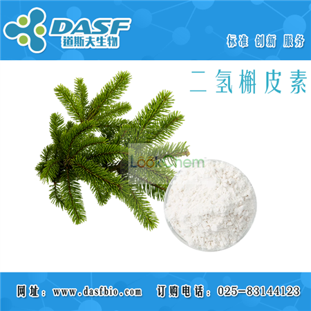 品牌:DASF 中文名 二氢槲皮素 中文同义词: 5,7,3'',4''-四羟基二氢黄酮醇;紫杉叶素;花旗松素;二氢槲皮素;(2R,3R)-二氢槲皮素;黄杉素;花旗松素(二氢槲皮素);花旗松素(标准品) 英文名称: Taxifolin 英文同义词: (+)-3,3'',4'',5,7-PENTAHYDROXYFLAVANONE;3,3'',4'',5,7-PENTAHYDROXYFLAVANONE;(2R,3R)-DIHYDROQUERCETIN;(2R,3R)-3,3'',4'',5,7-PENTAHYDROXYFLAVANONE;3,5,7,3'',4''-PENTAHYDROXYFLAVANONE;(+)-DIHYDROQUERCETIN;DIHYDROQUERCETIN;(+)-TAXIFOLIN CAS号: 480-18-2 分子式: C15H12O7 分子量: 304.25 纯度:>98% 检测方式:高效液相色谱法HPLC≥98% 规格:20mg 100mg 500mg 1g 1kg (可根据客户需求包装) 物理性质:无色针状结晶(50%乙醇),淡黄色粉末. 作用与用途:本品用于含量测定,不作其他用途。 贮藏方法:2-8°C,避光保存。 注意事项: 本品应在低温下保存,长时间在暴露在空气中,含量会有所降低。 二氢槲皮素是作为高档食品的原材料。 [植物来源] 松科植物落叶松、花旗松,金柳梅科植物纹母树,蔷薇科植物野黑樱,木材,龙牙草根,漆树科植物黄连木心材,唇形科植物安勃鞘蕊花叶。 我司另有二氢槲皮素大货可提供,根据客户要求包装,欢迎咨询