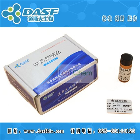 品牌:DASF 中文名称: 金丝桃素 中文同义词: 金丝桃素;贯叶连翘;千层楼;小对叶草;金丝桃素,金丝桃蒽酮;4,5,7,4ˊ,5ˊ,7ˊ-六羟基-2,2ˊ-二甲基萘并二蒽酮;海帕里辛;金丝桃蒽酮 英文名称: Hypericin 英文同义词: HYPERICUM RED;HYPERICIN;HYPERICIN (NATIVE);CYCLOSAN;CYCLO-WERROL;4,5,7,4'',5'',7''-Hexahydroxy-2,2''-dimethylnaphthodianthrone;1,3,4,6,8,13-HEXAHYDROXY-10,11-DIMETHYLPHENANTHRO[1,10,9,8-OPQRA]PERYLENE-7,14-DIONE;1,3,4,6,8,13-HEXAHYDROXY-10,11-DIMETHYLPHENANTHROL(1,10,9,8,OPQRA)PERYLENE-7,14-DIONE CAS号: 548-04-9 分子式: C30H16O8 分子量: 504.44 EINECS号: 208-941-0 性状: 本品为粉末 纯度:>98% 提取来源:藤黄科植物贯叶连翘的全草或带 金丝桃素 金丝桃素 叶全草 检测方式:高效液相色谱法HPLC≥98% 规格:20mg 100mg 500mg 1g 1kg (可根据客户需求包装) 作用与用途:本品用于含量测定,不作其他用途。 储藏方法:2-8°C,置阴凉干燥处、避光保存。 注意事项: 本品应在低温下保存,长时间在暴露在空气中,含量会有所降低。 我司提供以下服务: 1.中药提取物的定制研发和生产,中药提取物代加工相关服务。 2.中药高含量提取物的工业化高效分离及分离纯化生产 3.天然产物原料药和中间体的生产,定制(包括合成,半合成) 订购须知: 1.产品优势:高效稳定的专业纯化技术,完善的库存及供应体系,高效的销售团队。 2.包装规格:常规包装,如有特殊需求,我们根据客户要求包装。 3.运输方式:默认顺丰快递,大宗货物走德邦物流。 4.质量保证:严格的质量控制,通过全面的检测,是产品质量保证的基础。如有异议经我司确认可无条件退换货。 我司另有金丝桃素大货可提供,根据客户要求包装,欢迎咨询