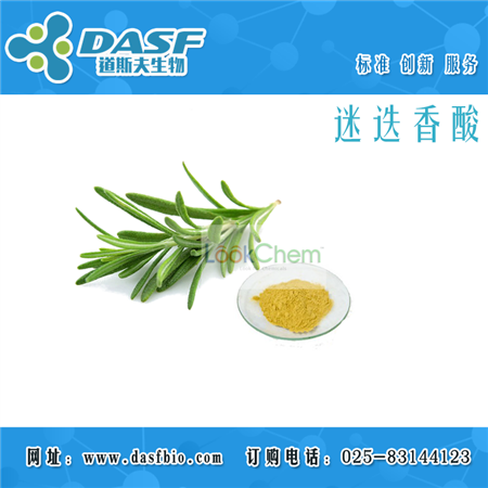 品牌:DASF 中文名称: 迷迭香酸 中文同义词: 酪萨维;迭香酸;肉桂醇甙;罗丹酚酸;迷迭香酸;迷迭香酸/酪萨维;迷迭香酸(标准品);迷迭香酸, 来源于迷迭香 英文名称: Rosmarinic acid 英文同义词: 3-(3,4-DIHYDROXYPHENYL)ACRYLIC ACID-1-CARBOXY-2-(3,4-DIHYDROXYPHENYL)ETHYL ESTER;3,4-DIHYDROXYCINNAMIC ACID (R)-1-CARBOXY-2-(3,4-DIHYDROXYPHENYL)ETHYL ESTER;[4ar-(4aa,9b,10a,10ab)]-1,3,4,9,10,10a-hexahydro-5,6,9-trihydroxy-1,1-dimethyl-7-(1-methylethyl)-2h-10,4a-(epoxymethano)phenanthren-12-one;ROSMARINATE;(r)-o-(3,4-dihydroxycinnamoyl)-3-(3,4-dihydroxyphenyl)lactic acid;(R)-2-(3,4-DIHYDROXYCINNAMOYLOXY)-3-(3,4-DIHYDROXYPHENYL)LACTIC ACID;(R)-ALPHA-[[3-(3,4-DIHYDROXYPHENYL)-1-OXO-2E-PROPENYL]OXY]-3,4-DIHYDROXY-BENZENEPROPANOIC ACID;[R-(+)]-ALPHA-[[3-(3,4-DIHYDROXYPHENYL)-1-OXO-2-PROPENYL]OXY]-3,4-DIHYDROXYBENZENEPROPANOIC ACID CAS号: 20283-92-5 分子式: C18H16O8 分子量: 360.31 性状: 本品为黄色粉末 纯度:>98% 提取来源:唇形科、紫草科、伞形科、葫芦科和椴树科等多种植物 检测方式:高效液相色谱法HPLC≥98% 规格:20mg 100mg 500mg 1g 1kg (可根据客户需求包装) 作用与用途:本品用于含量测定,不作其他用途。 储藏方法:2-8°C,置阴凉干燥处、避光保存。 注意事项: 本品应在低温下保存,长时间在暴露在空气中,含量会有所降低。 我司提供以下服务: 1.中药提取物的定制研发和生产,中药提取物代加工相关服务。 2.中药高含量提取物的工业化高效分离及分离纯化生产 3.天然产物原料药和中间体的生产,定制(包括合成,半合成) 订购须知: 1.产品优势:高效稳定的专业纯化技术,完善的库存及供应体系,高效的销售团队。 2.包装规格:常规包装,如有特殊需求,我们根据客户要求包装。 3.运输方式:默认顺丰快递,大宗货物走德邦物流。 4.质量保证:严格的质量控制,通过全面的检测,是产品质量保证的基础。如有异议经我司确认可无条件退换货。 我司另有迷迭香酸大货可提供,根据客户要求包装,欢迎咨询