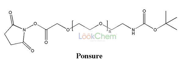 芃硕生物(Ponsure)的Boc-PEG活性酯(BOC-NH-PEG-NHS)可以用来修饰蛋白质、多肽以及其他活性基团材料或者小分子。活性酯(-NHS)能与氨基(-NH2)反应的PEG衍生物,在PH7-8.5与伯胺基团反应形成稳定的酰胺键。BOC(BOC-NH-)可以保护氨基,也很方便脱去保护。聚乙二醇(-PEG-)可以增加溶解度和稳定性。减少多肽和蛋白质的免疫原性,它也能抑制带电分子在修饰表面的非特异性结合。