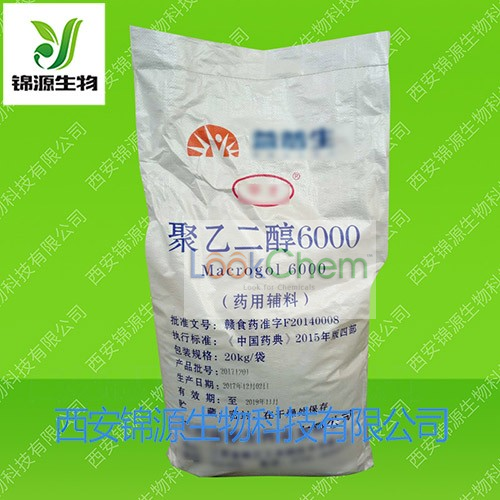 聚乙二醇 6000 (PEG-6000) 英文名:Macrogol 6000-992本品为环氧乙烷和水缩聚而成的混合物,分子式以HO(CH2CH2O)nH表示,其中n代表氧乙烯基的平均数。