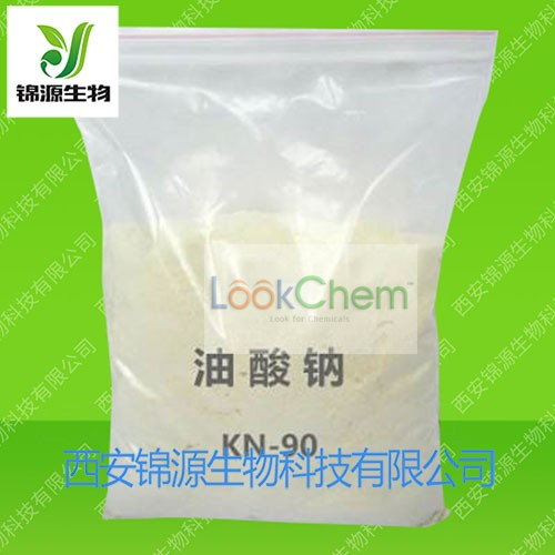 油酸钠, 别名十八烯酸钠,顺式-9-十八烯醇,油醇,顺-9-十八烯醇,(Z)-十八-9-烯醇,橄榄油醇,顺-9-十八烯-1-醇,9-正十八碳烯醇,十八烯醇。油酸钠是橄榄油等制成的肥皂的主要成分,也是牛脂皂的主要成分,还可由氢氧化钠与油酸反应制得。为憎水基和亲水基两部分构成的化合物,有优良的乳化力,渗透力和去污力,在热水中有良好溶解性,用作阴离子型表面活性剂和织物防水剂。