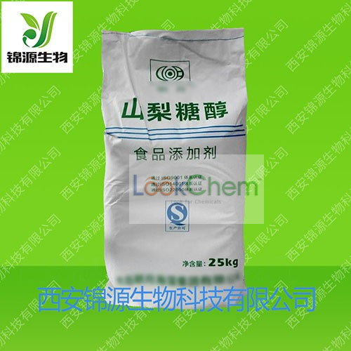 山梨糖醇,别名山梨醇。英文名Sorbitol、D-Glucitol、Sorbol、D-Sorbitol。分子式是C6H14O6,分子量为182.17。为白色吸湿性粉末或晶状粉末、片状或颗粒,无臭。依结晶条件不同,熔点在88~102℃范围内变化,相对密度约1.49。易溶于水(1g 溶于约0.45mL水中),微溶于乙醇和乙酸。有清凉的甜味,甜度约为蔗糖的一半,热值与蔗糖相近。食品工业中多为69~71%含量的山梨糖醇液。