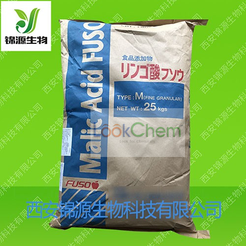 苹果酸,又名2-羟基丁二酸,由于分子中有一个不对称碳原子,有两种立体异构体。大自然中,以三种形式存在,即D-苹果酸、L-苹果酸和其混合物DL-苹果酸。白色结晶体或结晶状粉末,有较强的吸湿性,易溶于水、乙醇。有特殊愉快的酸味。苹果酸主要用于食品和医药行业。