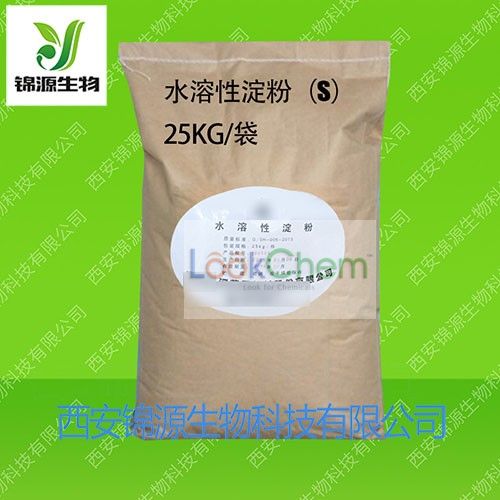 水溶性淀粉是一种介于淀粉和淀粉糖之间,经控制而成的低程度水解产品,该产品水化力较强,在常温下即可溶解,有良好湿度的粘性,有很好的载体作用,几乎没有甜度或不甜,耐热性强,不易褐变,有很好的乳化作用和增稠效果,吸湿性小,不易结团,成膜性好等优点。
