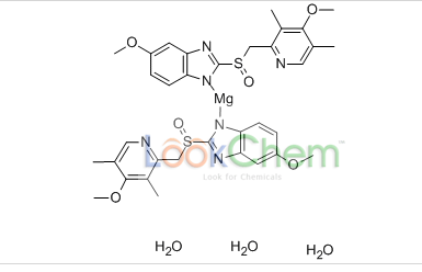 - 埃索美拉唑镁(三水); 二(5-甲氧基-2-[(S)-[(4-甲氧基-3,5-二甲基-2-吡啶基)甲基]亚磺酰基]-1H-苯并咪唑-1-基)镁盐三水合物