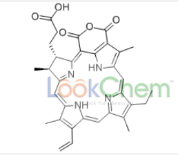 - 2,20-Porphinedicarboxylicanhydride,18-(2-carboxyethyl)-7-ethyl-17,18-dihydro-3,8,13,17-tetramethyl-12-vinyl-(8CI); 21H,23H-Porphine-2,20-dicarboxylic acid,18-(2-carboxyethyl)-12-ethenyl-7-ethyl-17,18-dihydro-3,8,13,17-tetramethyl-,cyclic 2,20-anhydride, (17S-trans)-; Purpurin 18 (6CI);4,7:14,17-Diimino-21,2-metheno-12,9-nitrilopyrano[4,3-b]azacyclononadecine,21H,23H-porphine-2,20-dicarboxylic acid deriv.;15H,20H-4,7:14,17-Diimino-2,21-metheno-9,12-nitrilopyrano[4,3-b]azacyclononadecine-16-propanoicacid, 10-ethenyl-5-ethyl-16,18-dihydro-6,11,15,22-tetramethyl-18,20-dioxo-,[15S-(15R*,16R*)]-; Purpurin a
