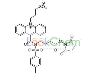 Cas 199293-83-9 吖啶酯(NSP-SA-NHS)和相关化合物已被证明是非常有优势的化学发光标记物,稳定性,活性和敏感性超过了那些放射性同位素。吖啶酯能与任何含有氨基的蛋白发生反应(见图1)。在碱性条件下,NHS将会离去,吖啶酯将会以一个稳定的酰胺键与蛋白质结合形成吖啶化合物。反应完成后,多余的吖啶盐通过脱盐柱除去。在存在碱性过氧化氢,吖啶标记的蛋白不需要酶催化可自行发光。加入激发试剂后,体系立即释放光子,可以用430nm标准光度计检测。这个发光过程是十分短暂(整个过程的发生小于2秒),触发方案必须增加内部光度计和光子探测器。蛋白质,多肽,抗体,核酸都可以用吖啶标记。标记化合物在碱性过氧化氢的激发下快速发光,通过收集光子可以检测到标记化合物。